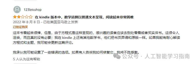 一些差评也是因为kindle上公式显示有问题**(PDF版本没有这个问题,大家可以放心学)**