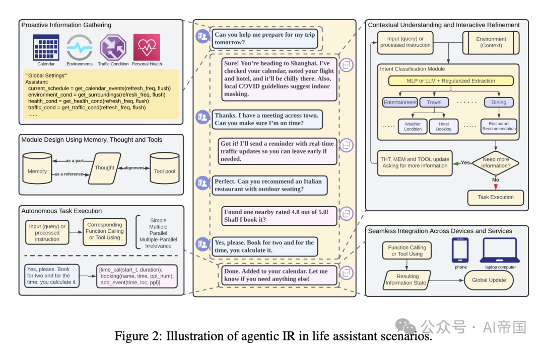 研究人员提出了一个全新概念:“主动式信息检索”(Agentic IR)。不同于传统搜索引擎简单地"查找-展示",这种新型AI系统像一位能够"察言观色"的智能助手,通过多轮对话和行动,精准理解并满足用户需求。比如,当你想找一家餐厅时,它不仅能推荐合适选择,还能帮你比较价格、查看评价,甚至直接预订座位!