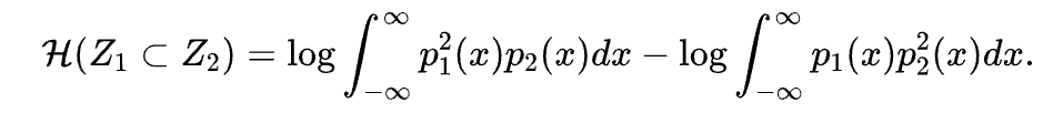 为了应对这个问题,作者引入了一个新的目标函数,该函数强制随机变量 包含在另一个随机变量 中。假设 和 分别是它们的对应概率密度函数(pdf)。如果 包含在 中,那么作者可以假设具有高 的区域将被重叠到具有高 的区域。从这个观察中,作者提出了一种新的包含度量方法,强调具有高 的区域,并计算在 分布下强调的 的期望。具体而言,作者将平方设置为 ,并计算 。这种度量方法与 Bhattacharyya 距离()或内积()有关,但作者的度量方法是为了衡量“包含”(如果 包含在 中,则高;否则低)而其他方法是为了衡量“分布之间的距离”或“差异”。