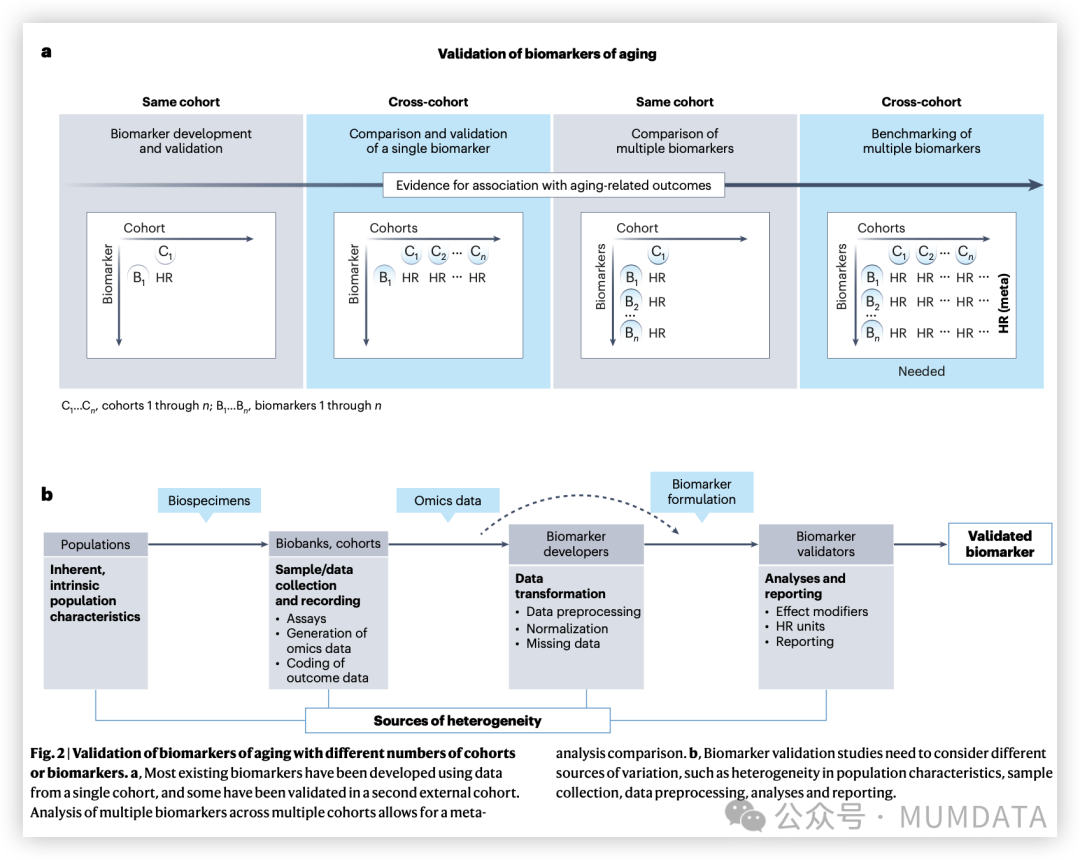衰老标志物验证研究涉及诸多方法学挑战。文章提出了一套系统而创新的方法学框架,对不同研究设计、验证策略和异质性来源进行了全面剖析和系统梳理,并提出相应的优化策略。