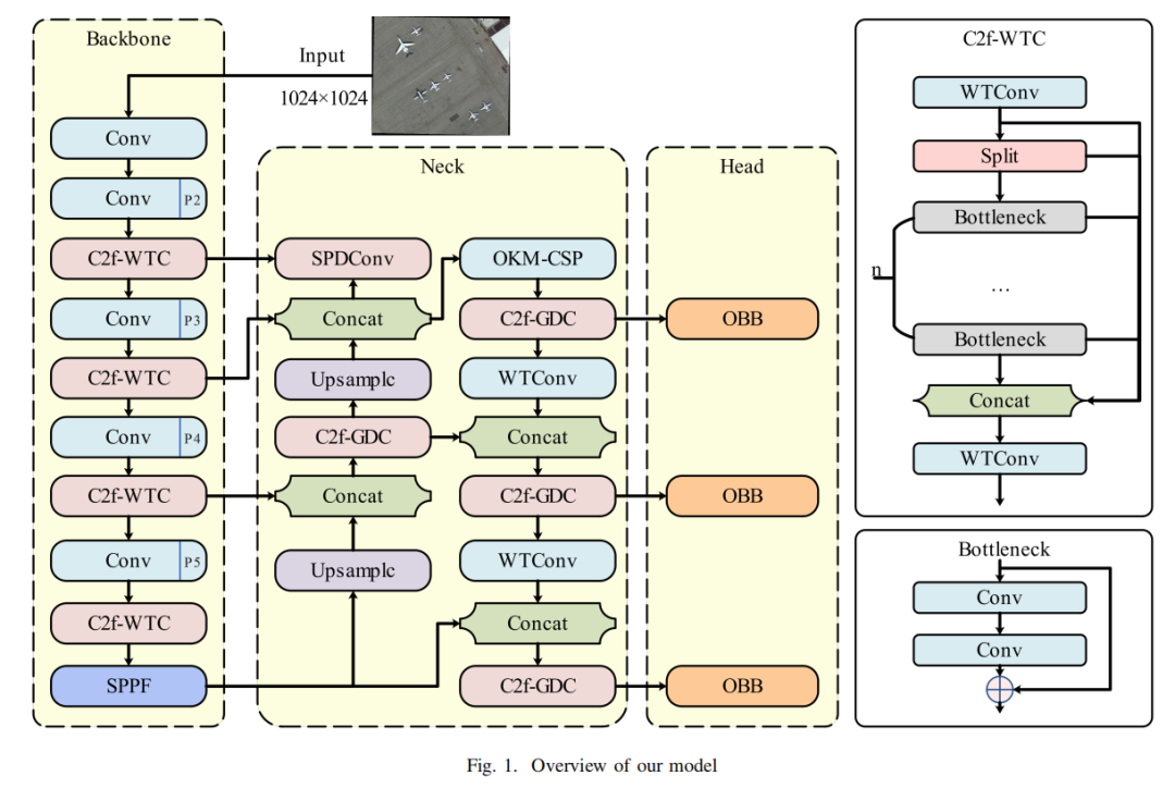 C2f-WTC的主要优势在于其参数数量相对于感受野大小的对数增长,与传统方法的二次增长形成对比。这种设计在提高检测精度和参数效率方面进行了优化,能够以经济的计算足迹处理复杂图像,从而提升模型的定向目标检测能力。