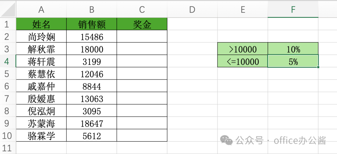 比如我们想要根据设定好的绩效规则,自动计算出每位员工的奖金。