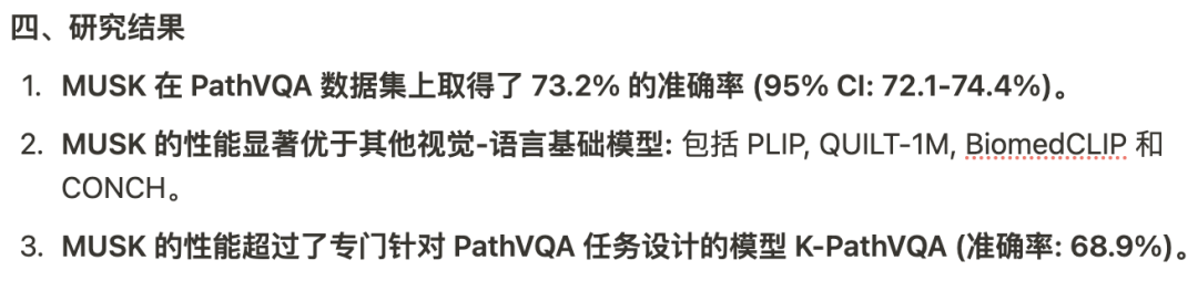 二、MUSK 模型在病理学视觉问答任务上的表现