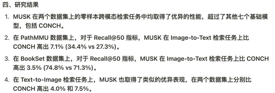 一、MUSK 模型在零样本跨模态检索任务上的表现