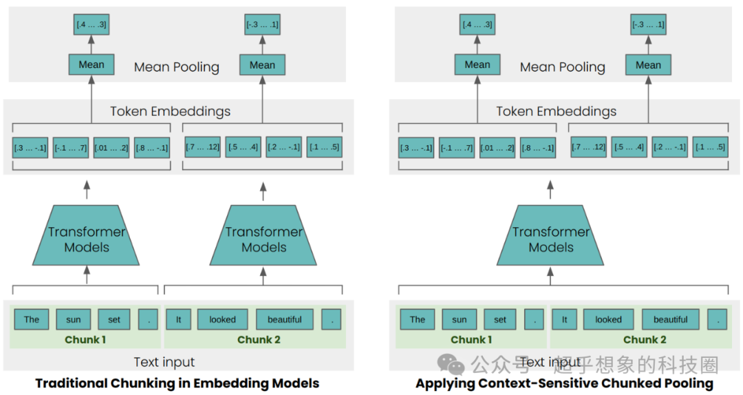RAG一般的流程是先做文本切分,然后再向量化,而Jina给出的解决方案正如其名——Late Chunking,它是先直接对整段文本做向量化,然后再切分。