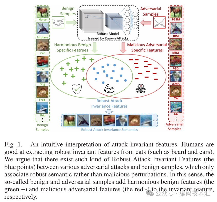 深度神经网络(DNN)在计算机视觉任务中表现出色,但极易受到对抗攻击的影响。当前的防御方法大多针对已知攻击,而对未知攻击的鲁棒性被严重忽视。此外,常用的自适应学习和微调技术在对抗防御中并不适用,因为这本质上是一个零样本问题。为解决这一挑战,本文提出了一种攻击无关的防御方法 Meta Invariance Defense(MID)。