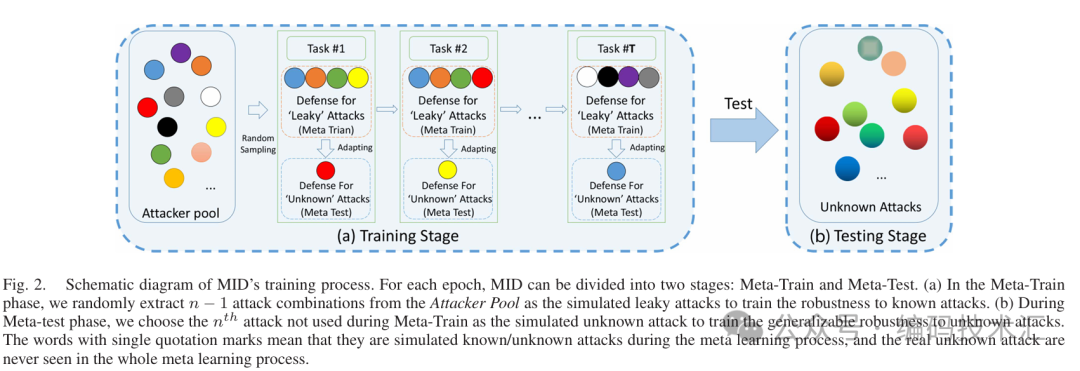 MID 结合了两阶段的元学习机制和多一致性蒸馏约束,训练学生编码器从攻击者池中提取攻击不变特征。具体步骤如下: