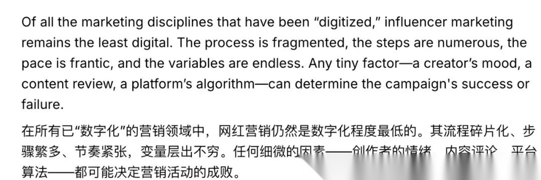 挨个筛选博主、沟通排期,这些本质上没有太多增量价值的工作,却占据了大量时间和精力。结果,真正应该花在思考和创意上的部分,反而被严重挤压。