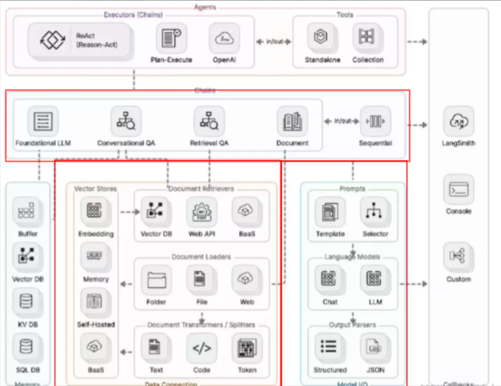 ·Chains:将模型调用和业务逻辑组织成链式结构,实现任务分解和流程控制。