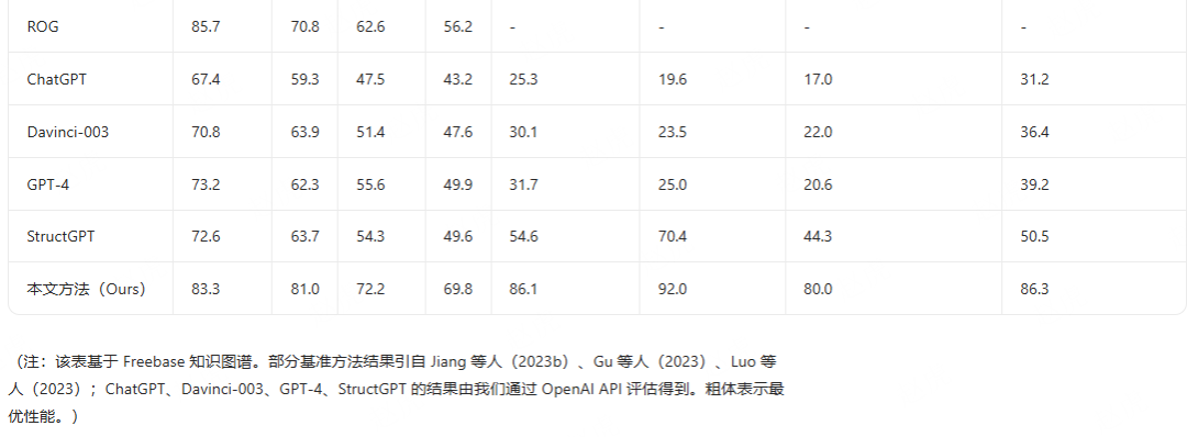 (注:基准方法的结果引自 Jiang 等人(2023b)的研究。)