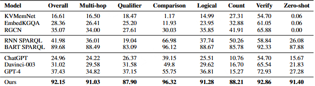 :比用全量数据训练的方法好 —— 比如在 CWQ 数据集上,F1 分数比最好的基线高 7.5%,用的训练数据却只有对方的 36%;