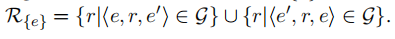 分别表示实体集与关系集。三元组⟨e, r, e′⟩描述了 “头实体e与尾实体e’之间存在关系r” 这一事实知识。每个实体e都有唯一的实体 ID(或字符串值),并属于某一实体类型t(如 “国家(Country)”“人物(Person)”)。此外,我们引入 “邻域关系” 来表示实体集{e}的入度关系与出度关系,定义为