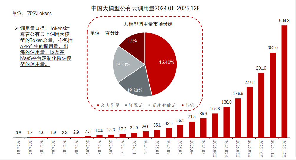随着大模型进入指数级增长的产业应用期,市场调用量正迅速向具备云基础设施与海量应用场景双重优势的头部厂商归拢