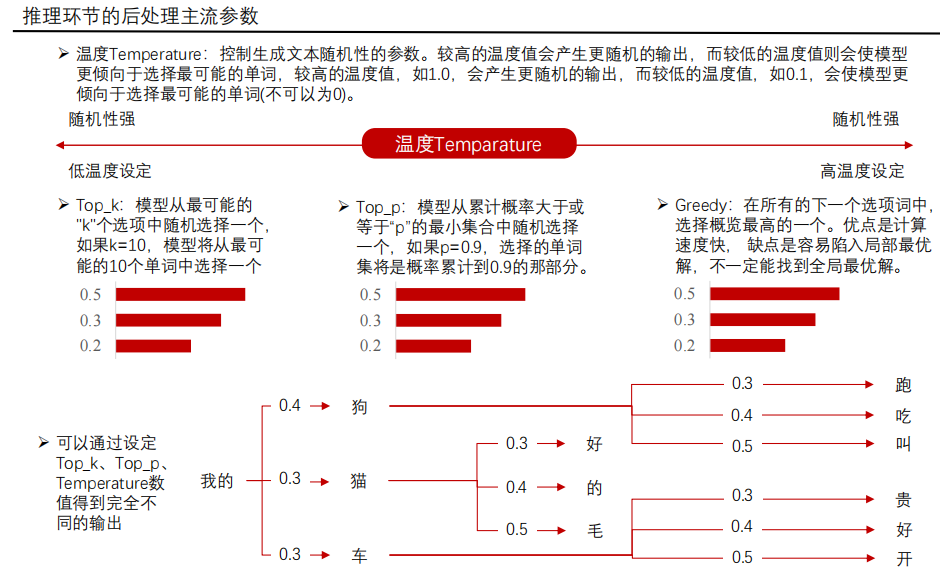 大模型推理后处理技术是通过温度采样、Top-k/Top-p裁剪与贪心选择对输出概率分布进行调控,为了在生成多样性、语义连贯性与输出稳定性之间实现最佳平衡。