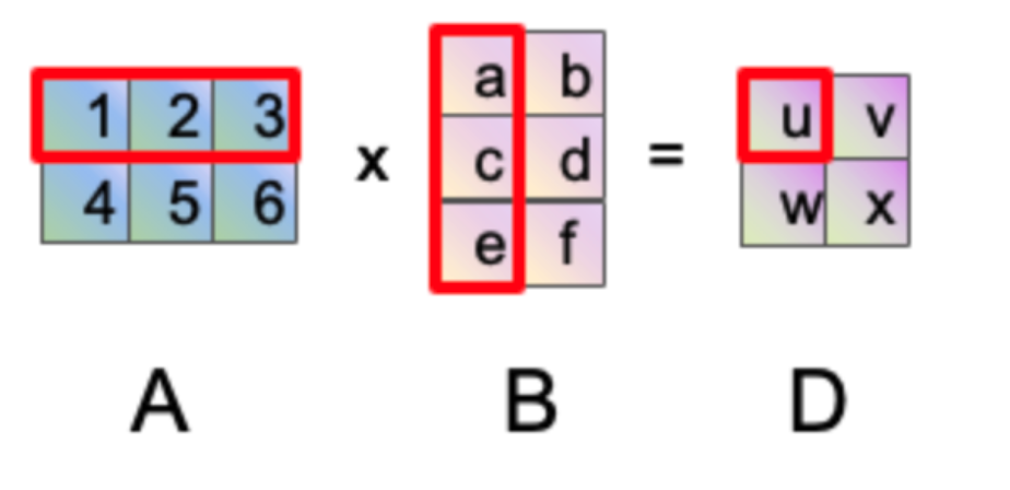 我们在计算两个矩阵乘法时,计算逻辑具体如下: