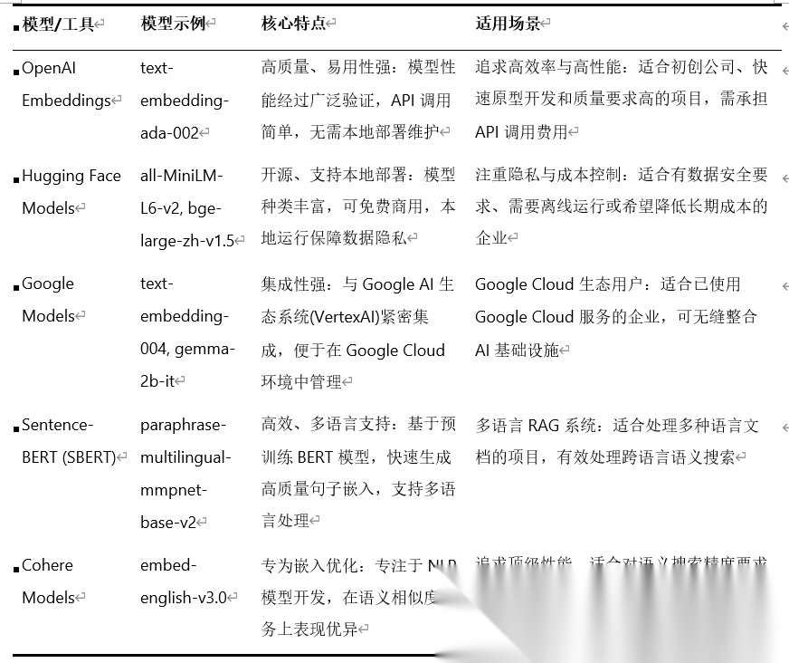 主流嵌入模型对比: