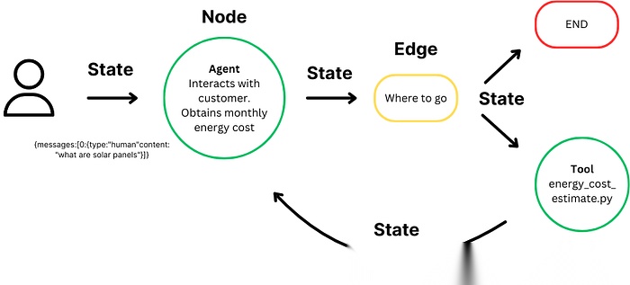 LangGraph 的结构概念图(包括节点、状态与边的关系)