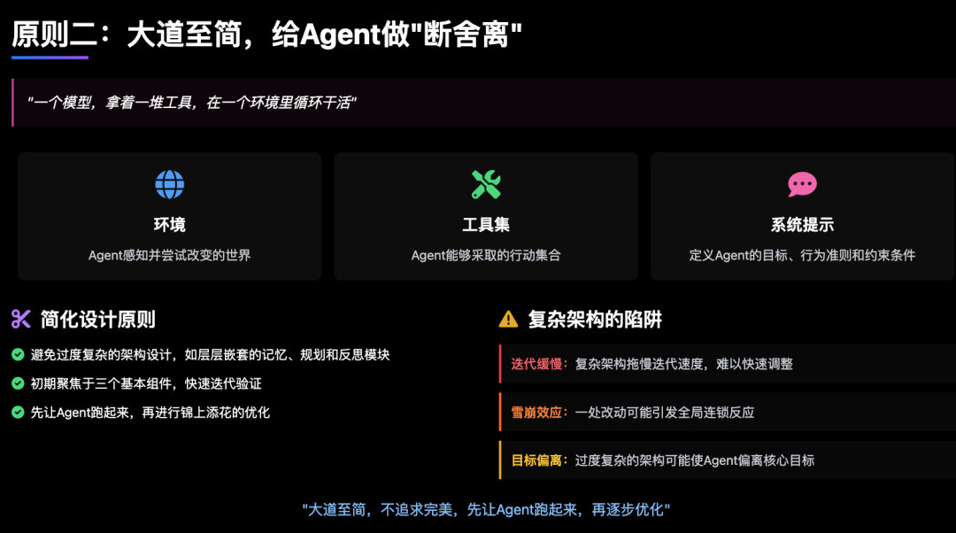 记住,先让agent跑起来,再去做锦上添花的优化。一开始就追求完美,只会让你寸步难行。