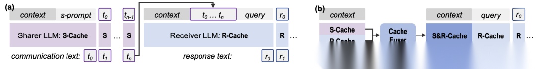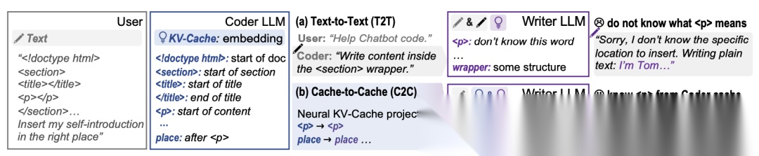 那么,能否绕过文本,让模型直接“交换思想”?论文作者将目光投向了 KV-Cache——LLM在推理过程中为加速生成而缓存的键(Key)和值(Value)矩阵。它不仅存储了上下文信息,还保留了模型对输入的深层理解,是一种比文本更密集的语义表示。