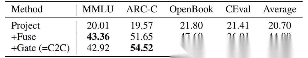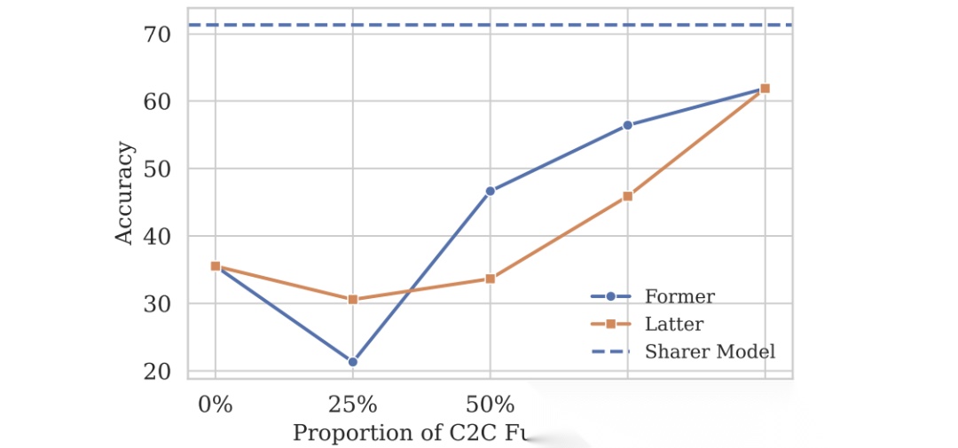 - +门控(完整C2C):准确性进一步提升至47.95%,说明动态层选择能优化信息注入。
