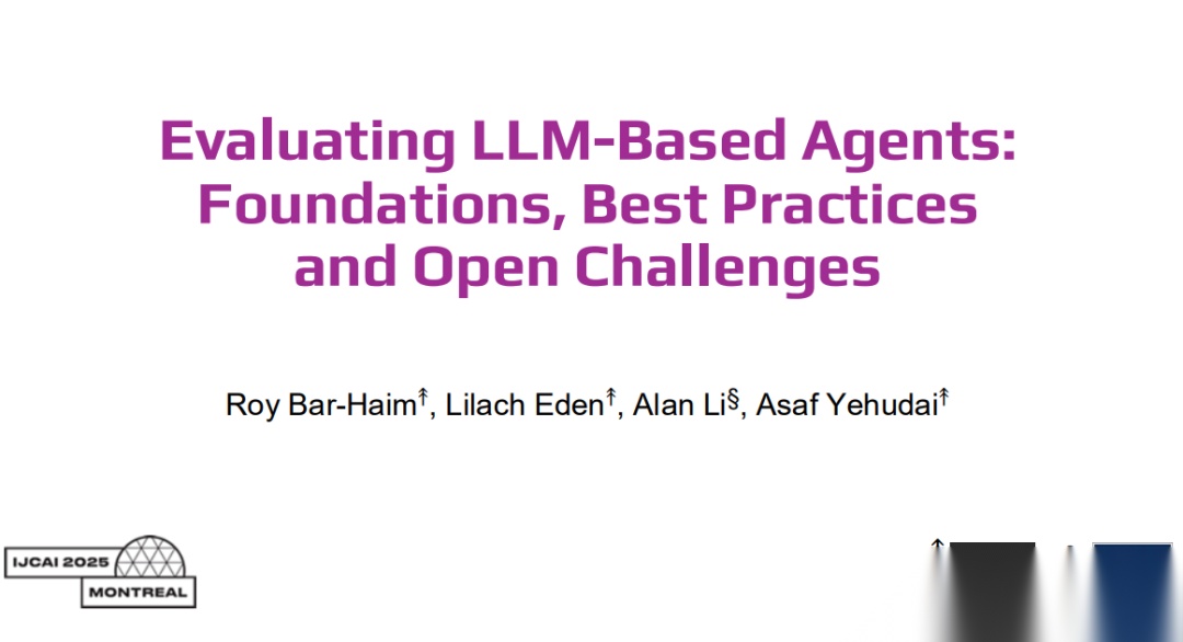 来自今年的**IJCAI(International Joint Conference on Artificial Intelligence)—A类国际学术会议会上,IBM和耶鲁的研究人员给出了《评估基于LLM的智能体:基础、最佳实践与开放挑战》教程。**