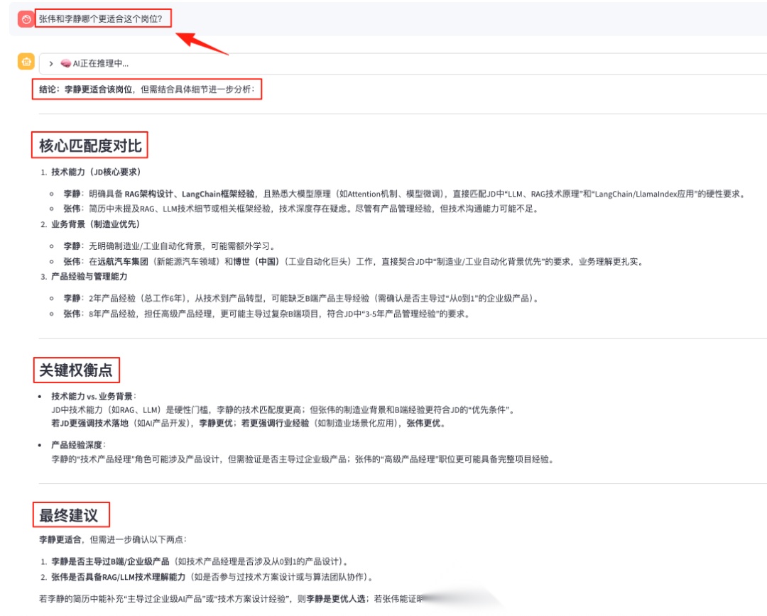 多轮问答 1:“张伟和李静哪个更适合这个岗位?”