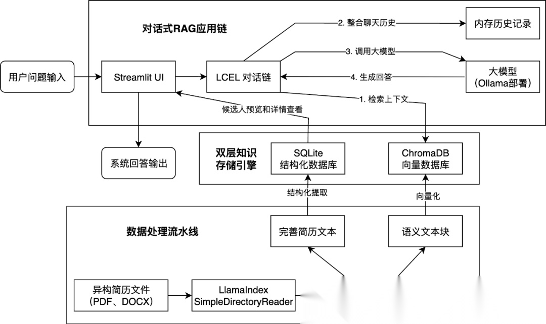 简历筛选场景的三大核心痛点、包含数据处理流水线、双层知识存储引擎,以及基于 LCEL 对话式 RAG 应用链的核心架构,最后完整的演示下框架化的开发流程并进行效果验证。
