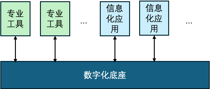 数字化底座是信息化和专业应用(工业软件)的基础平台。一般来说,包括云基础设施、数据集成平台、业务应用集成平台等。随着云、容器、微服务等技术的发展,基础资源管理和服务部署的解决方案已经形成共识,企业数字化应用的难点聚焦到应用和数据集成。企业软件从一体化应用到组装式应用的演进,本质上是要解决个性化应用、业务/数据敏捷集成、成果复用的问题。