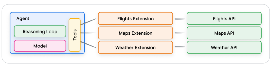 - 扩展(Extensions):标准化地连接API与智能体,让智能体无缝执行操作。