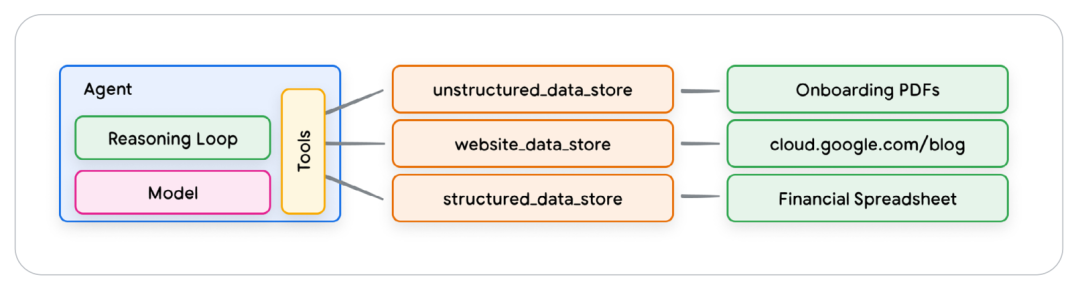 - 数据存储(Data Stores):以提供数据库的形式,存储并提供智能体访问动态更新的信息。