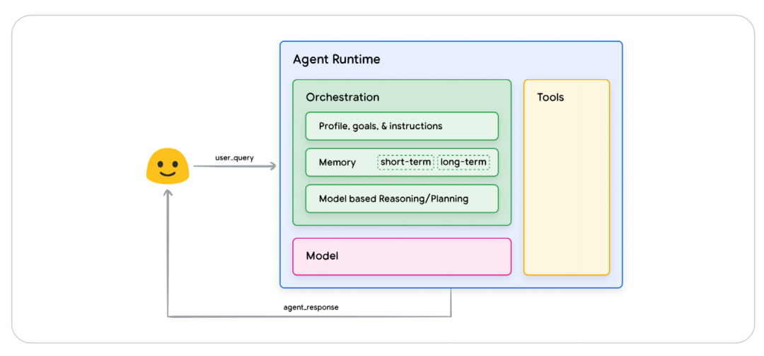 智能体的行为由认知架构驱动,而架构的核心由模型、工具和编排层三大组件构成,三者协同实现信息处理、决策、行动的闭环。