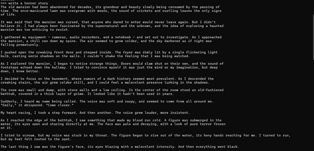 通过发送提示来生成文本,例如:“Write a horror story.”(写一个恐怖故事。)