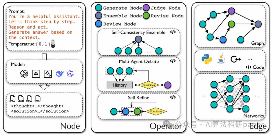 - 把大模型智能体工作流优化变成代码化搜索问题,用节点和逻辑边建模,不用人工设计。