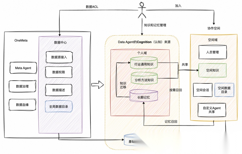 - 我们称为Cognition,有点拟人化意思。 包含前文描述的三层知识(基础数据知识,分析方法支持和行业通用知识),同时包含Agent的长期记忆, 作为 Data Agent的认知基座,为每次分析提供认知支撑。