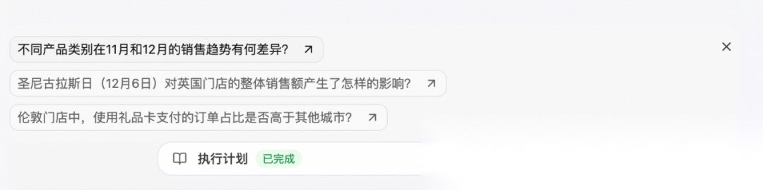 在语义结构明确后,Data Agent 会自动生成意图执行计划,以结构化方式给用户展示分析思路,用户也可以根据需要进行调整。