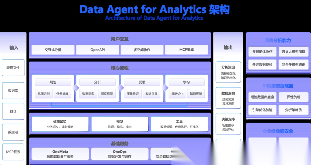 本篇将介绍DMS的一款数据分析智能体(Data Agent for Analytics )产品的技术思考和实践。Data Agent for Analytics 定位为一款企业级数据分析智能体, 基于Agentic AI 技术,帮助用户查数据、做分析、生成报告、深入洞察。由于不同产品的演进路径,背景都不一样,所以只介绍最核心的部分,来深入剖析如何构建企业级数据分析助手:能力边界定义,技术内核,企业级能力。希望既能作为Data Agent for Analytics产品的技术核心介绍,也能作为读者的开发实践的参考。
