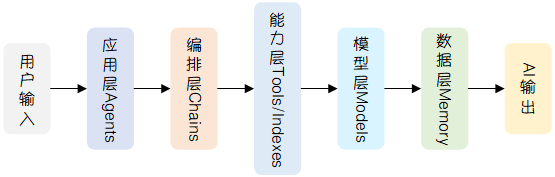 这就像Spring项目里的Controller → Service → DAO 调用链,只不过LangChain是自然语言的调用链。
