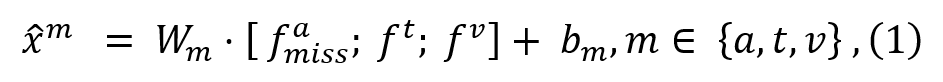 表示模态 m 的重建特征,a、t、v 分别表示声学、文本和视觉模态。