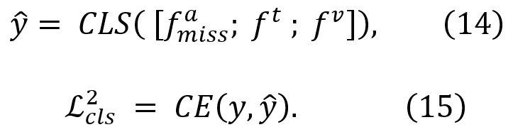 **第二阶段:直接难度训练。**我们进一步微调了语义特征编码器组件,并使用缺失模态的样本联合训练了直接难度计算模块。给定从可用模态中提取的语义特征,我们首先使用串联的特征进行情感分类: