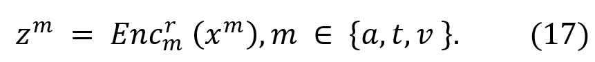 ,我们首先使用语义特征编码模块提取模态语义特征。该模块使用三个基于Transformer的编码器来生成表示