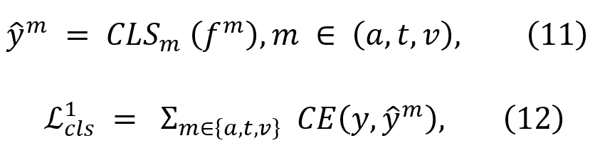 。为了监督每种模态的表示学习,我们附加了三个独立的分类头,并分别使用每个模态的特征进行情感预测。分类头经过交叉熵损失的训练,以指导每个编码器捕获与判别情感相关的信息。