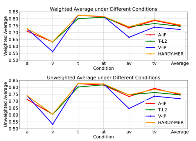 为了提高对困难样本的敏感性并增强缺失模态多模态情感识别的鲁棒性,我们提出了 HARDY-MER,这是一种将检索增强学习与课程学习相结合的新框架。我们引入了一种基于重建误差和跨模态互信息的多视角难度评估机制,并设计了一种基于检索的动态课程学习策略。这涉及从特定模态特征库中检索语义相关的支持样本,检索量由样本难度自适应地确定。由此产生的难度感知课程指导模型训练。实验表明,HARDY-MER 的性能优于最先进的方法,据我们所知,它是第一个在这种环境中整合检索和课程学习的方法。未来的工作将探索将 HARDY-MER 扩展到大规模预训练多模态模型,以在具有挑战性的条件下提高鲁棒性。