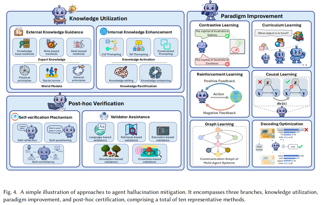 从训练与推理范式入手,增强Agent抵抗幻觉的能力,包括6种关键方法:
