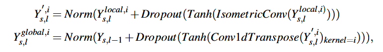 再采用等距卷积(Isometric Convolution)建模局部特征间的关系来建模序列的全局相关性。然后采用转置卷积进行上采样恢复序列长度。