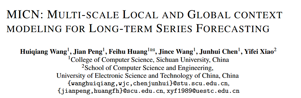 本文提出了一种新的多尺度等距卷积网络(MICN),通过结合局部特征和全局相关性来捕捉时间序列的整体视图。实验结果表明,MICN在多个真实世界数据集上取得了最先进的长期时间序列预测性能。