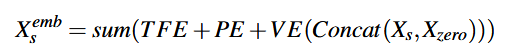 Embedding采用三个部分来嵌入输入,TFE(时间特征编码)、PE(位置编码)和VE(值嵌入)。