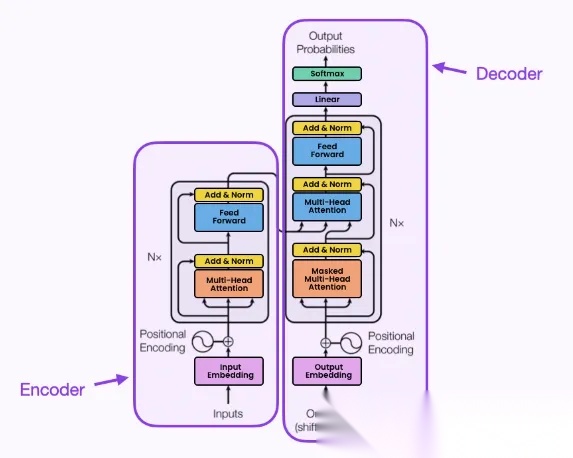 最初的Transformer模型也使用了编码器 - 解码器架构。编码器由编码层组成,这些层逐层迭代处理输入。解码器由解码层组成,对编码器的输出进行同样的处理: