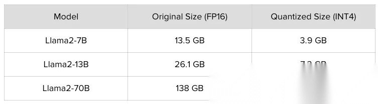 英伟达的A100 GPU最先进的版本有80GB内存。在下面的表格中可以看到,LLama2 - 70B模型大约需要138GB内存,这意味着要部署它,我们需要多个A100 GPU。在多个GPU上分布模型不仅意味着要购买更多的GPU,还需要额外的基础设施开销。另一方面,量化版本大约需要40GB内存,因此可以轻松地在一个A100上运行,显著降低了推理成本。这个例子甚至还没有提到在单个A100中,使用量化模型会使大多数单个计算操作执行得更快。
