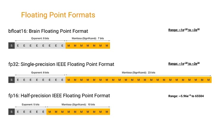 除了研究之外,这两家公司还开发了支持低精度操作的硬件和框架。例如,英伟达的T4加速器是低精度GPU,其张量核心技术比K80的效率要高得多。谷歌的TPU引入了bfloat16的概念,这是一种为神经网络优化的特殊基本数据类型。低精度的基本思想是,神经网络并不总是需要使用64位浮点数的全部范围才能表现良好。