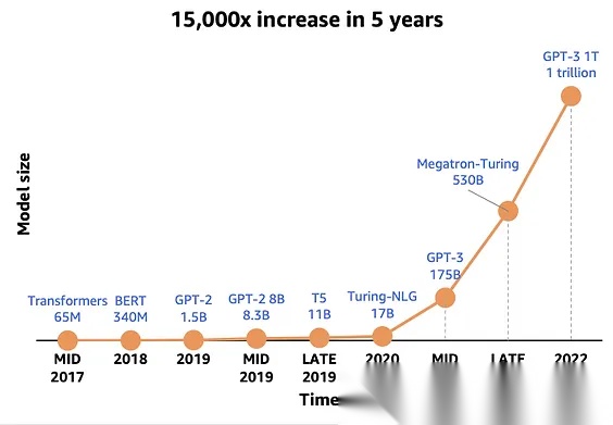 Transformer神经网络架构允许使用非常大的模型,这些模型通常包含数千亿个参数。如此大规模的模型可以摄取大量数据,这些数据通常来自互联网,也可以来自如包含超过500亿个网页的Common Crawl,以及约有5700万页面的维基百科等来源。